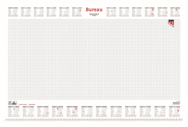 Memo-onderlegger van FSC-gecertificeerd papier, 50 vellen, met notitieruimte en driedelige kalender. Afmeting 56,5x36 cm, geschikt voor snel noteren en plannen.