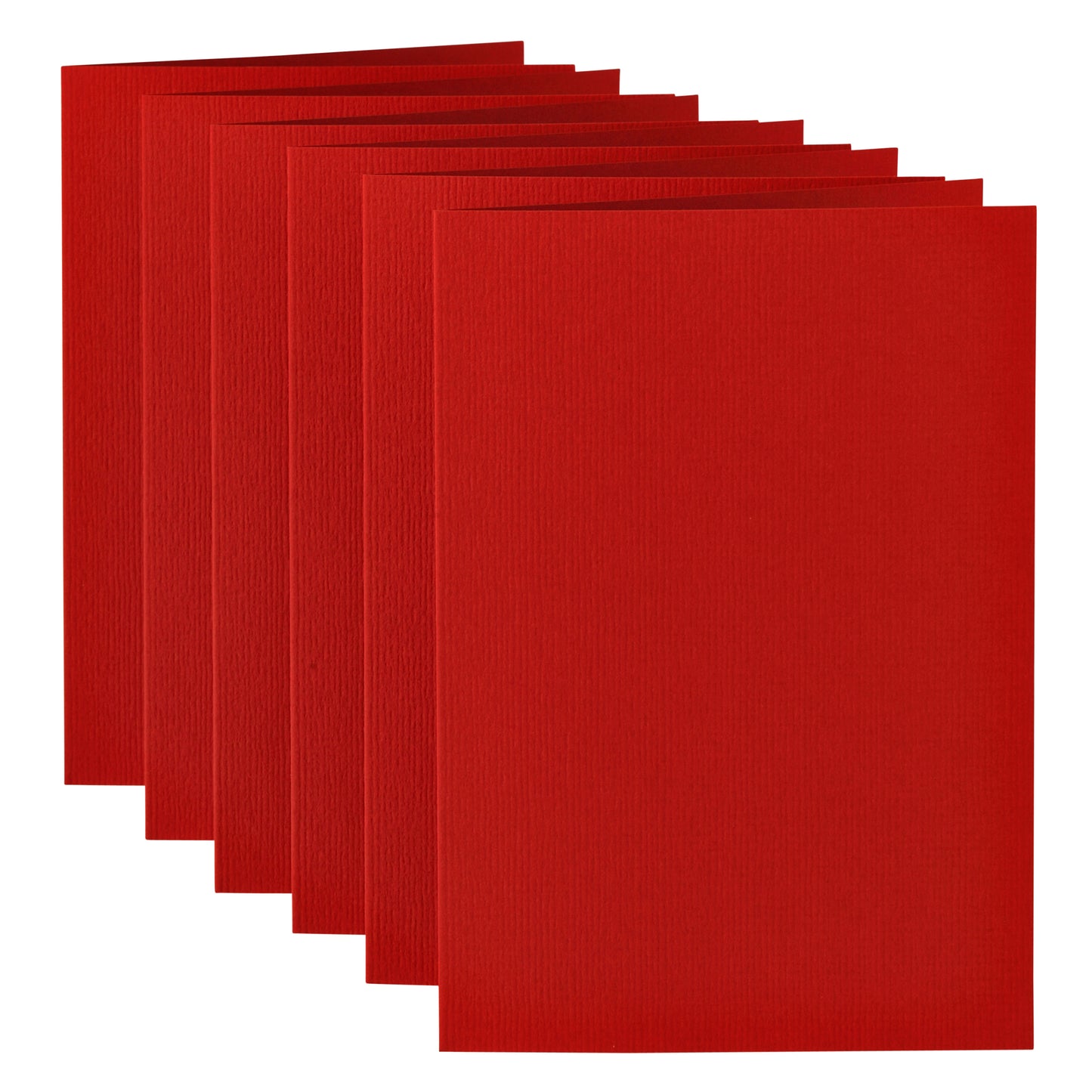 Rode dubbele kaarten in A6 formaat (105x148mm), gevouwen. Gemaakt van 210 grams gerecycled papier. Verpakt in sets van 6 stuks. Perfect voor creatieve en hobbygebruik. Bijpassende enveloppen en A4 papier zijn ook in dezelfde kleur beschikbaar.