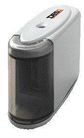 Compacte elektrische slijper, werkt op 4 penlite batterijen (niet inbegrepen). Geschikt voor potloden tot 8 mm diameter, voorzien van stalen frees en transparant slijpselbakje voor gemakkelijke controle.