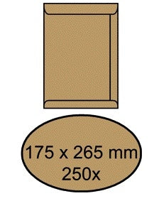 Bruine envelop van 175x265mm, vervaardigd uit 90 g/m² gerecycled papier. Voorzien van zelfklevende sluiting en geschikt voor professioneel gebruik.