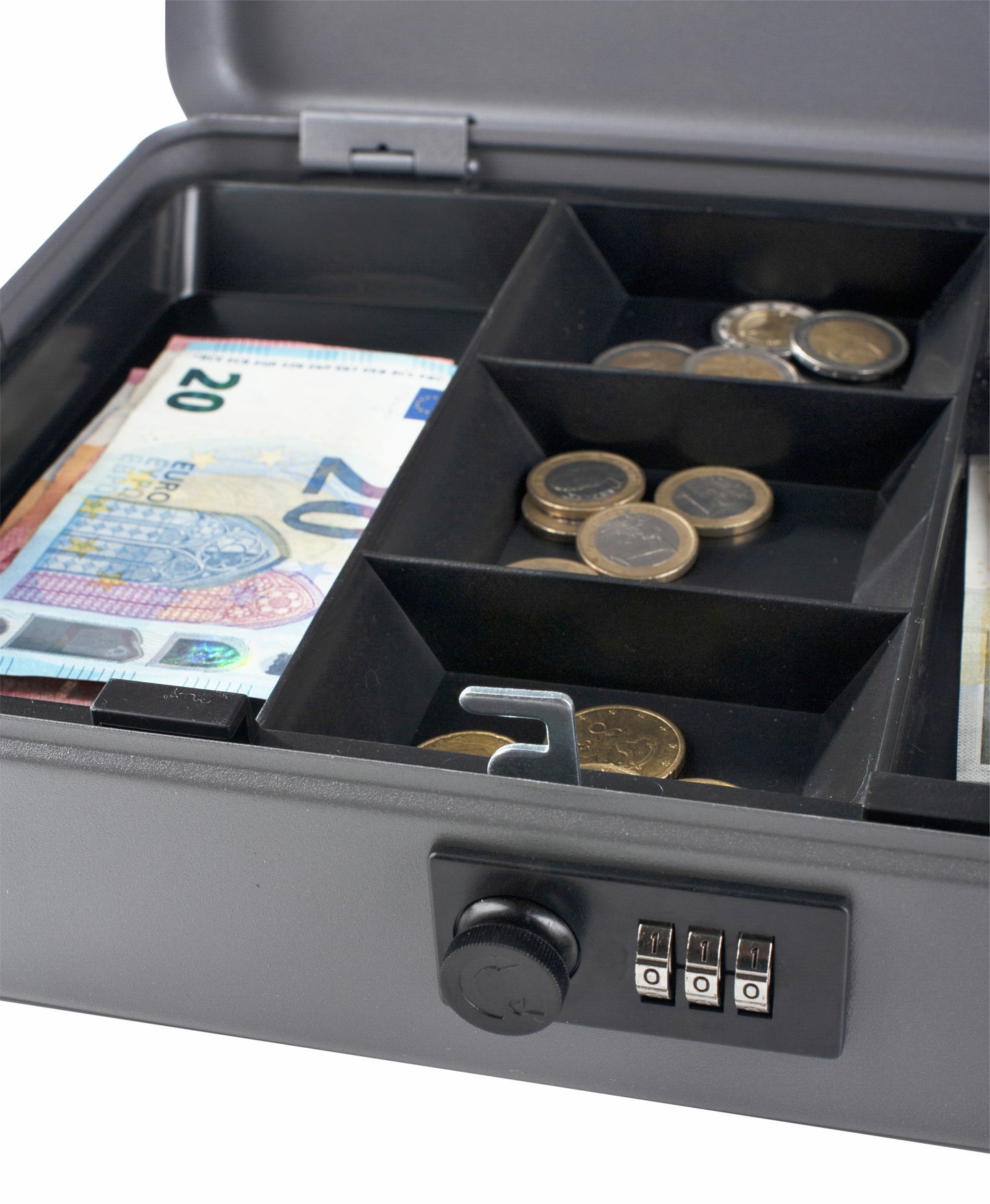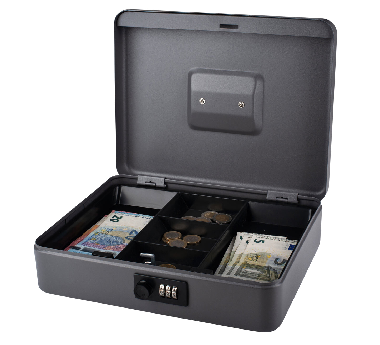 • Geldkist met 3-cijferige cijfercombinatie voor extra beveiliging.