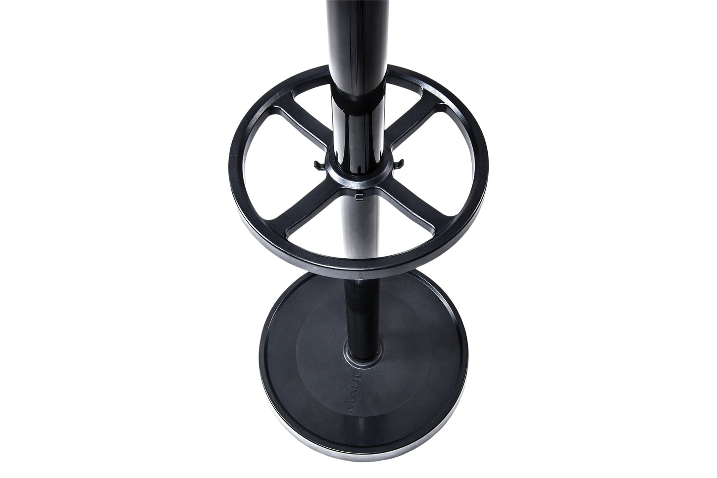 De Maul Nubis kapstok is een stevige, zwarte staande kapstok met een staalconstructie en betonvoet voor stabiliteit. Uitgerust met 8 mutshaken en 16 jashaken, extra haken van kunststof, en een draaibare kroon van 41 cm. Inclusief paraplubak voor 8 paraplu’s en 4 zakparaplu’s. Hoogte: 176 cm, voetdiameter: 36,5 cm, gewicht: 6 kg. Eenvoudige montage.