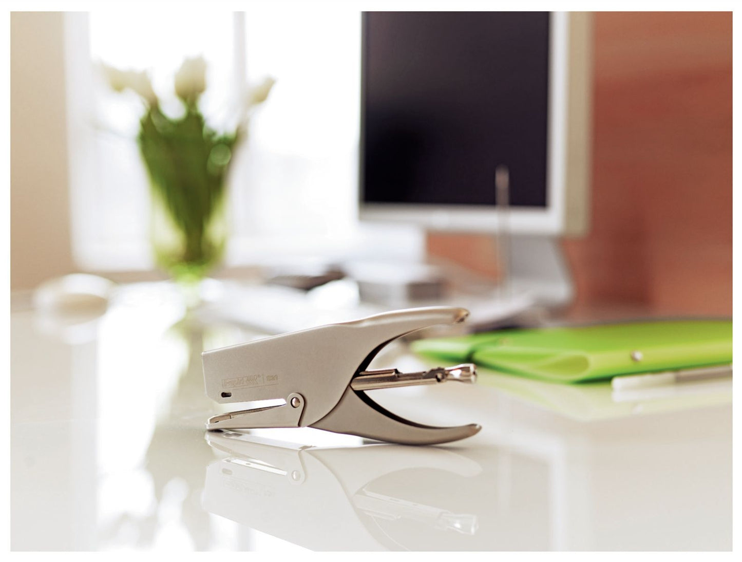 Geavanceerde niettang met gepatenteerde Super Flat Clinch-technologie, die de papierstapel met 40% vermindert. Kan 30 vel nieten met 21/4 of 21/6 nietjes. Inlegdiepte: 42 mm. Achterlaadsysteem en 5 jaar garantie bij gebruik van Rapid nietjes.