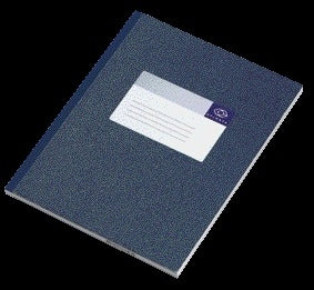 Harde kaft notitieboek met gelinieerd, houtvrij papier. Voorzijde voorzien van etiket. Gelijmd gebonden, linnen rug. Afmeting 210x165 mm, 128 pagina's.