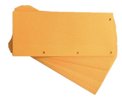Gekleurde scheidingsstrook met dubbele perforatie voor zowel horizontaal als verticaal gebruik. Ideaal voor het snel verdelen en organiseren van documenten in ordners of ringbanden. Beschikbaar in 5 frisse, moderne kleuren voor een overzichtelijke indeling. Beschrijf de strook voor persoonlijke organisatie. Afmetingen: 105x240 mm, gemaakt van 100% gerecycled materiaal.