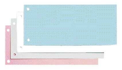 Gekleurde scheidingsstrook voor het organiseren van dossiers. Afmetingen 240x105mm, 190 grams gerecycled manillakarton. Voorzien van dubbele perforatie en geschikt voor 2-gaats systemen. Met het Blauwe Engel keurmerk.