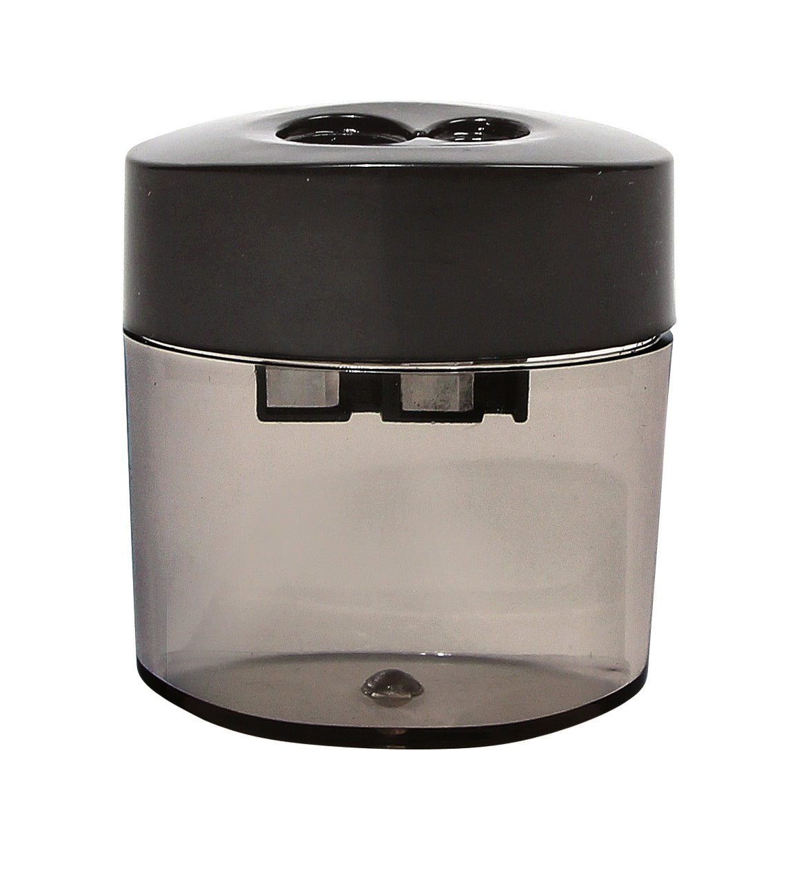 Robuuste metalen puntenslijper met twee slijpgaten voor standaard en jumbo potloden. Voorzien van een opvangbak voor slijpsel. Compact formaat van 26,5x26x17 mm.