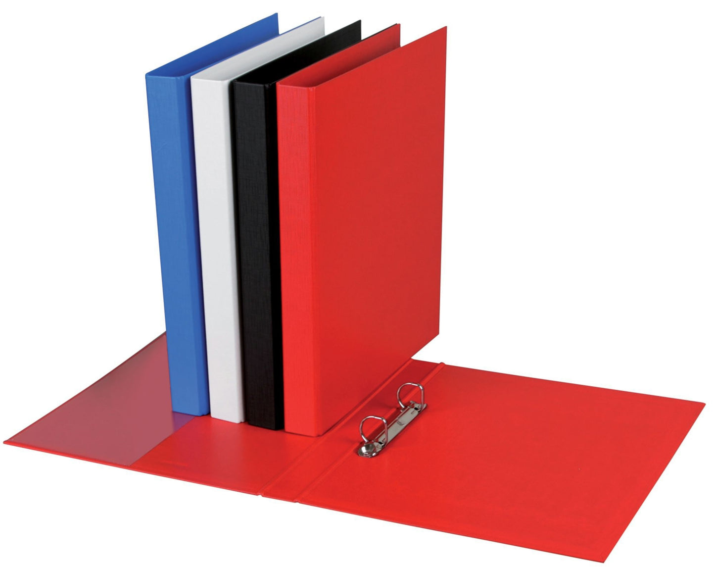 Rode polypropyleen overtrokken kartonnen ringband met 2 ringen en een D-mechaniek van 20mm. Voorzien van een transparante binnenhoes en een rugbreedte van 35mm.