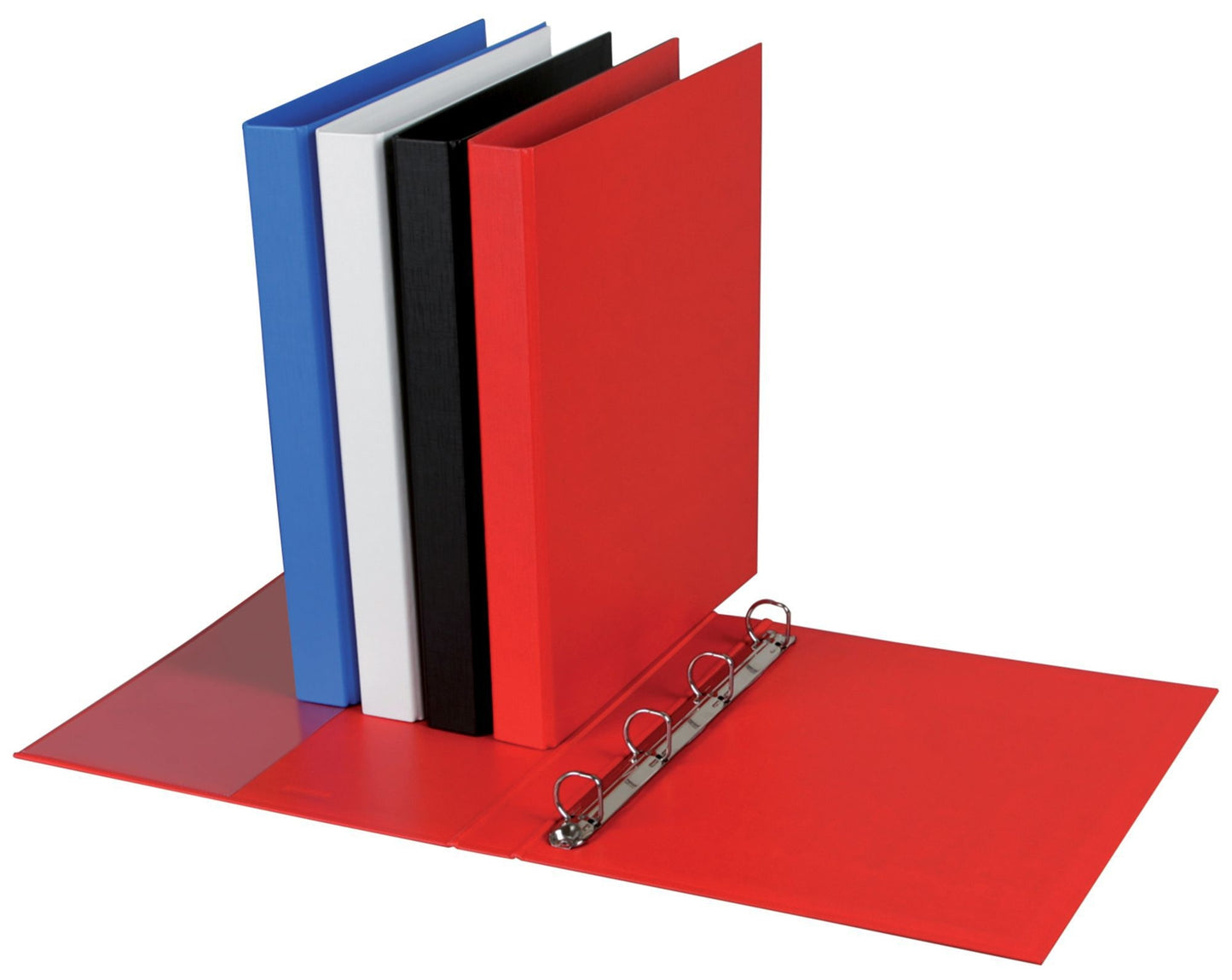 Rode polypropyleen overtrokken kartonnen ringband met 4-rings D-mechaniek van 20mm. Voorzien van een transparante insteektas aan de binnenzijde en een rugbreedte van 35mm. Ideaal voor organisatie en presentatie.
